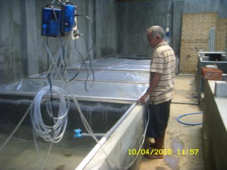Langkah berikutnya adalah dengan memasukkan Indukan Jantan dan Betina dalam satu kolam yang berukuran 2,3m x 2,3m x0,8m dengan ketinggian air 30-35 cm yang terlebih dahulu diberi kakaban ( rangkaian ijuk yang diapit bambu) dengan ukuran kolam tersebut bisa di pasang rangkaian ijuk 12 buah, dengan ukuran panjang sekitar 1m dan lebar rentangan ijuk 20 cm.